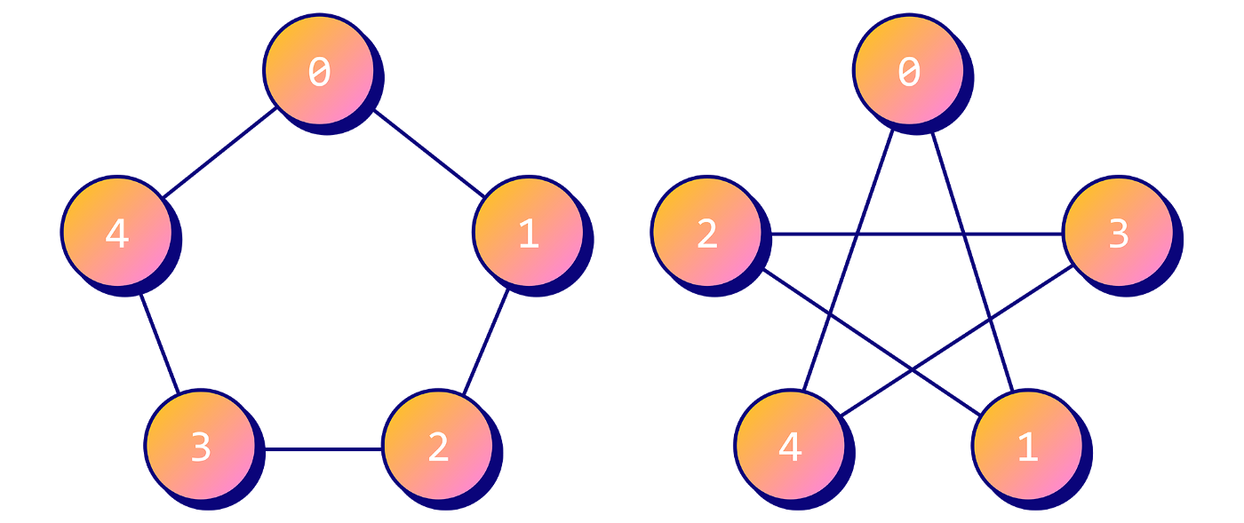 However, by doing this we are specifying a node ordering! This can cause a lot of problems because we need to process graph data independently of isomorphism. For example the following graphs are the same but they are arranged differently: