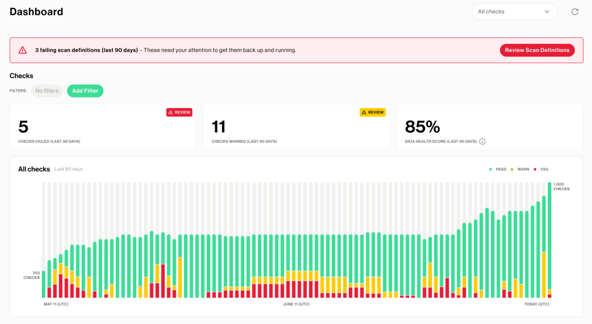 Then, there is the Soda platform. This subscription-based platform is built on top of Soda-core and provides an easier approach to the workflow like a dashboard and scheduled checks. The platform also comes with SodaGPT, an LLM with the task of converting user descriptions of desired checks to SodaCL code.