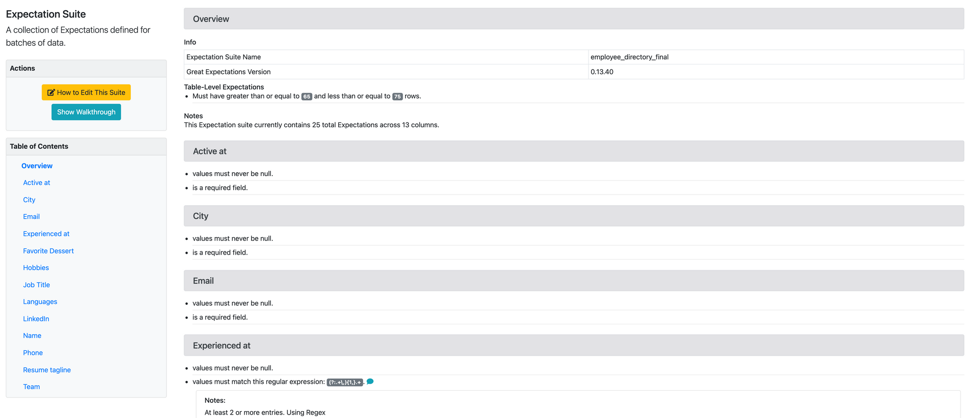 One of the great things from Great Expectations is their Data Docs. Data Docs are these HTML pages that Great Expectations compile from your expectation suites and validation runs. To learn more, here is the original website.