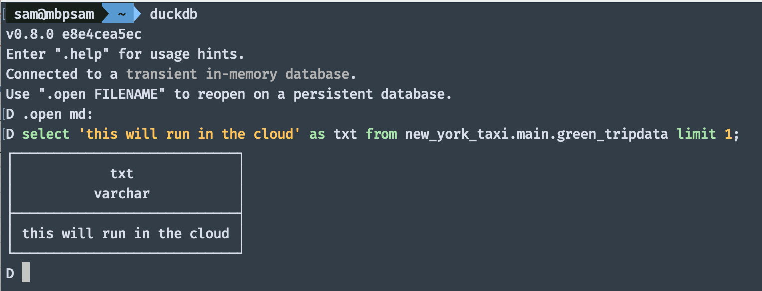 That's it. When I tried MotherDuck myself, I was impressed by the ease of use. The line above opens an authentication flow in your browser and of course, there is a way to provide a token to even automate this step.
