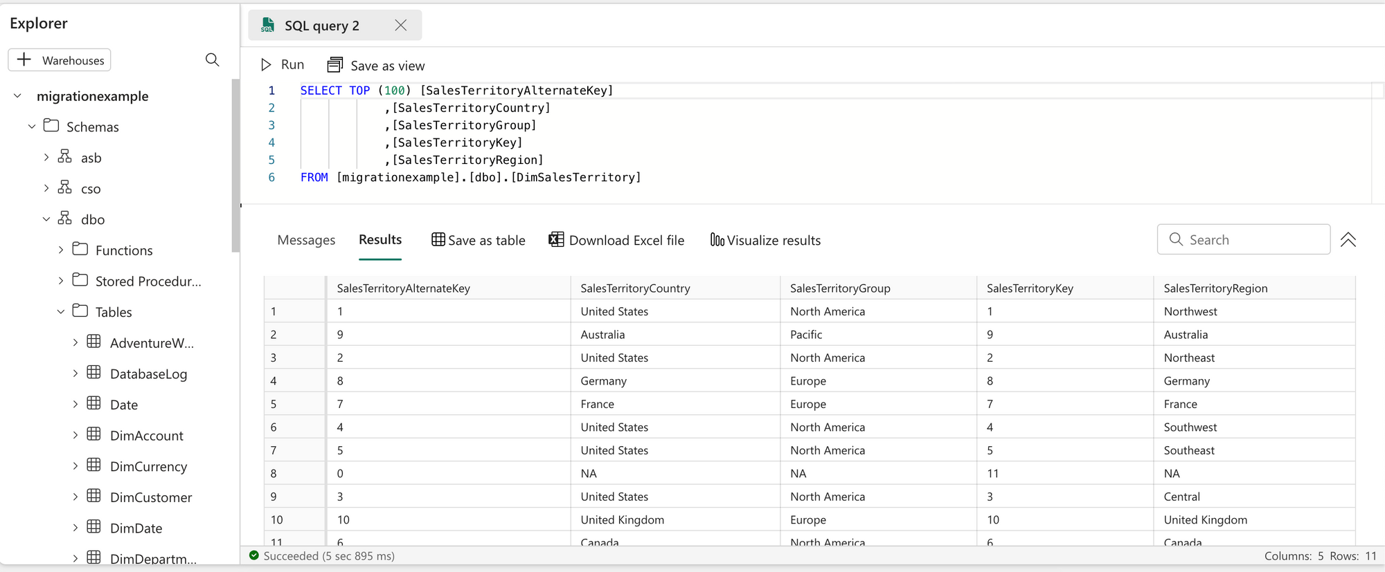 Depending on the size of your data, this script may take a while. It's again recommended to use SQL Server Management Studio or Azure Data Studio to execute it. Once the load is done, you can instantly query your data in Fabric.