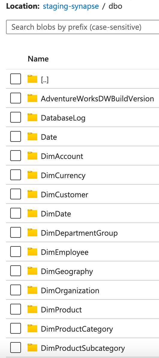 In the first step, we'll use the CETAS (Create External Table As Select) feature to export the tables to Parquet datasets in a data lake. This data lake is used as a staging area from which we can load the data into Fabric.