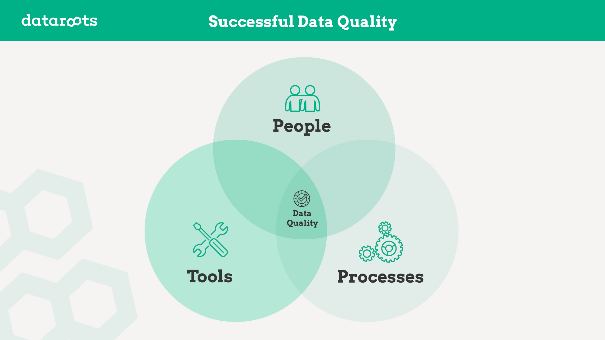 Data quality wouldn't be complete if we were missing on the human aspect of it. Like any technical solution, it doesn't work if nobody uses it and if there is no commonly shared guidelines and processes around it. Successful data quality is the combination of all this.
