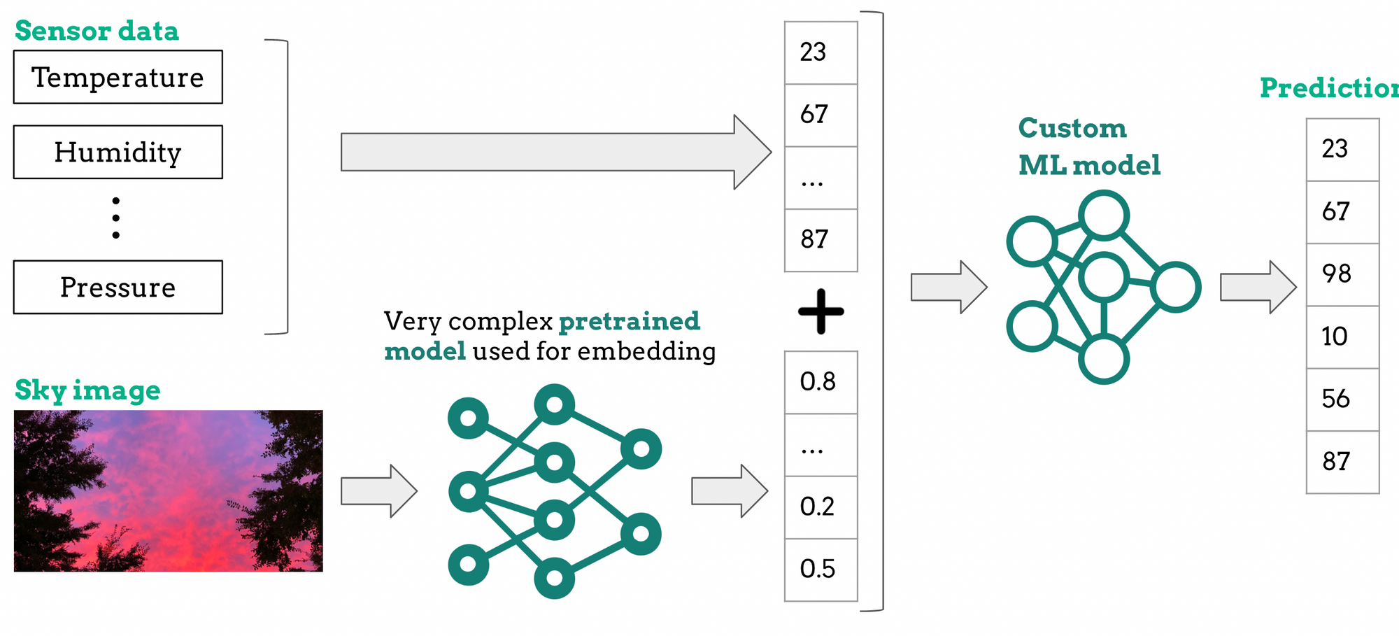 To recap, we received two types of data: sensor data and images from the sky. Because the sensor data is numerical (e.g., temperature and pressure), it can be easily processed and interpreted by any ML model.