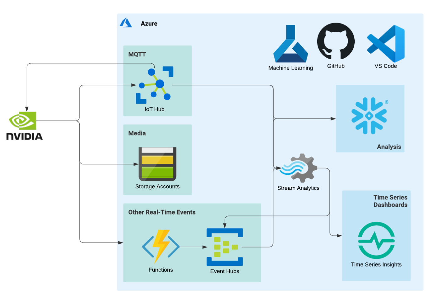 - Team 2 - “The cloud team”, a team also consisting of 2 consultants. The cloud team was responsible for completely setting up the cloud infrastructure, and services to receive, and store the data. They also instantiated the resources and the environment needed to train the machine learning model.