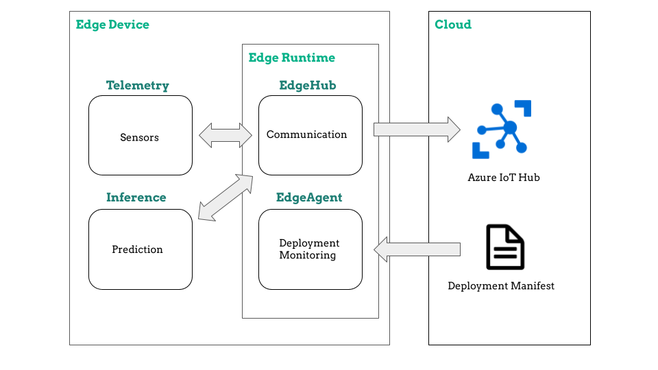 - IoT Edge Hub: acts as a local proxy for IoT Hub enabling communication between the edge device and the cloud.